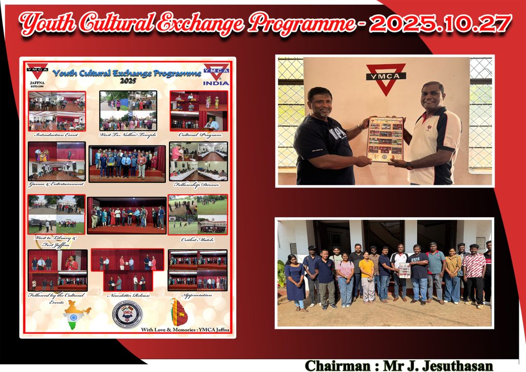 A Youth Cultural Exchange Programme was successfully held at YMCA Jaffna on 27th and 28th October. Members representing various Indian YMCAs visited YMCA Jaffna to participate in this meaningful event aimed at fostering friendship and cultural understanding.